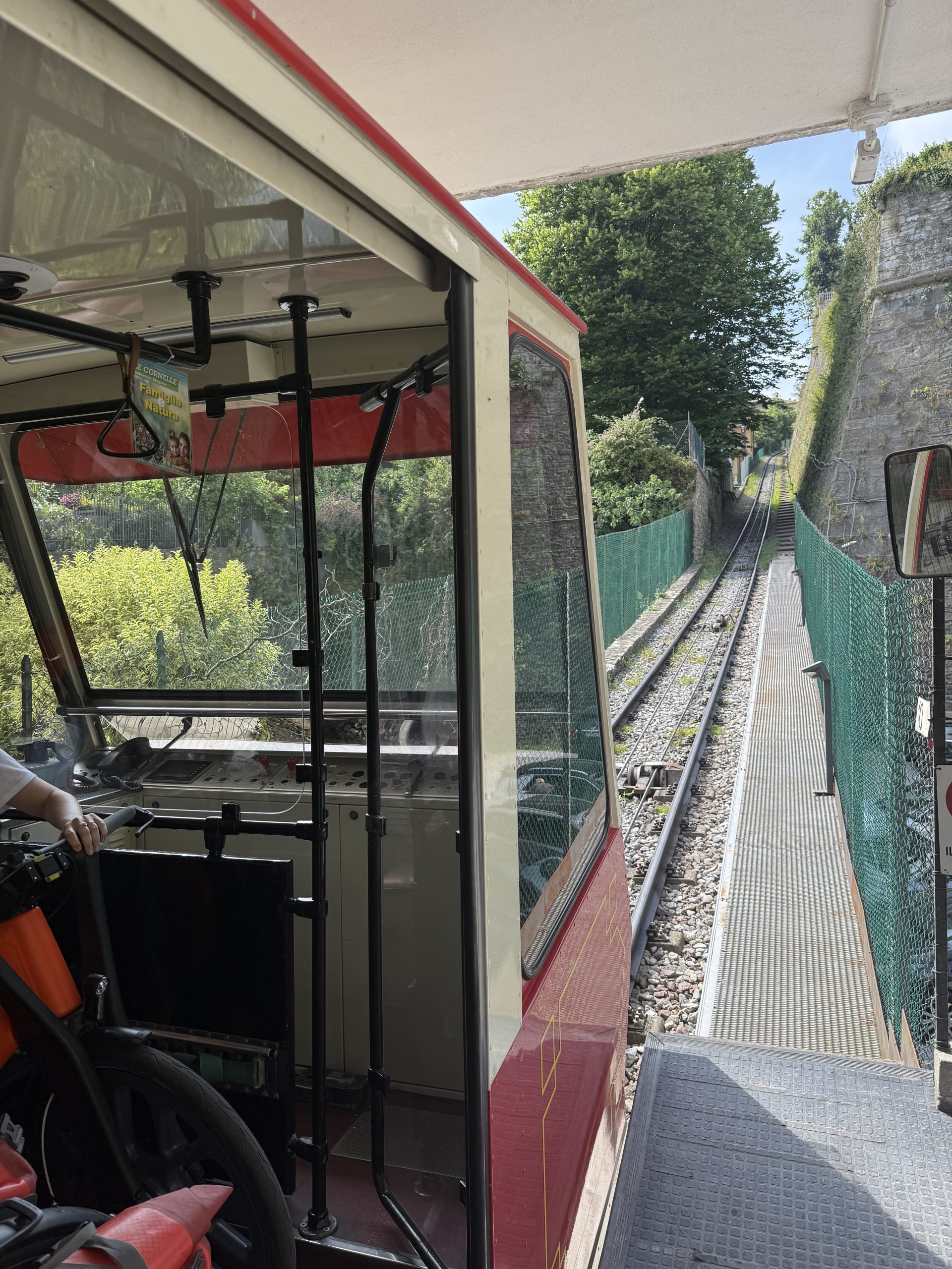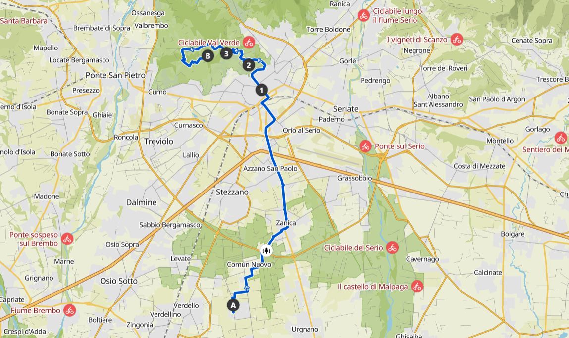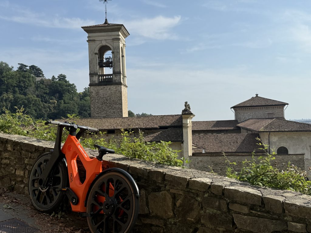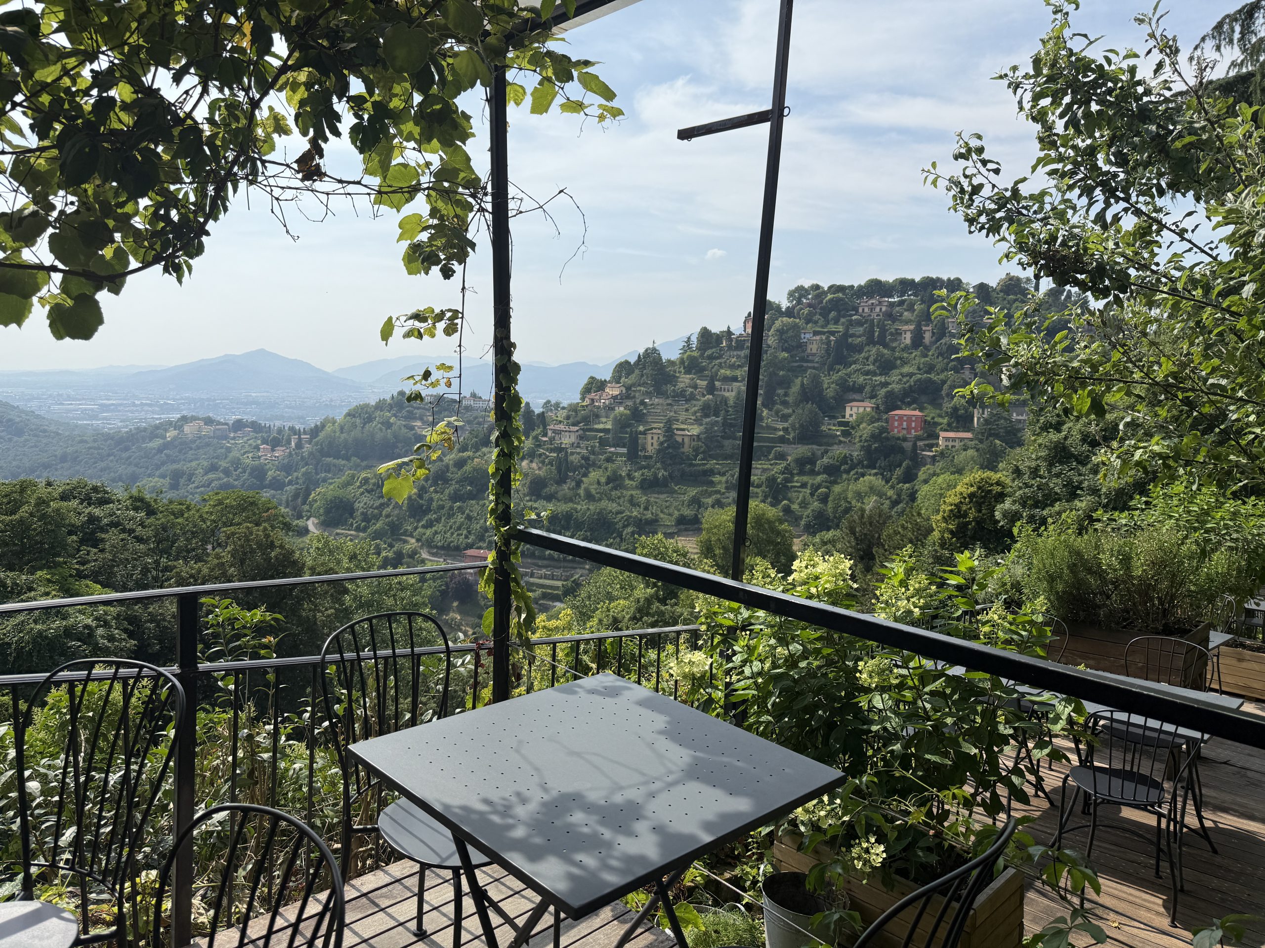 In the afternoon, it’s time to climb even higher: we take the funicular to San Vigilio, then pedal a short distance to reach the most scenic point of the day. From up here, Bergamo looks like a postcard – red rooftops, blue skies, green hills, and the Bergamo valleys appearing in the distance.