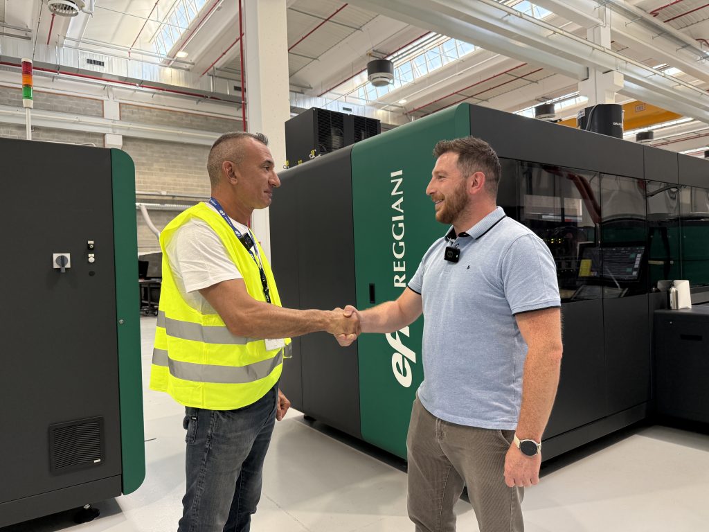 Once again, the day begins with a visit to one of our customers – the heart and true main charachter of our adventure. Today we’re in EFI Reggiani, with over 75 years of experience the group designs and manufactures high-quality printing machinery. In Italy, Reggiani Macchine is specialized in the production of digital and analog textile printers for all kinds of applications: fashion, home textiles, sportswear and visual communication. Luca Amboni and Daniele Merizio invite us in their extensive show room and explain us how innovation, quality and sustainability drive every development, helping reduce consumption and environmental impact.