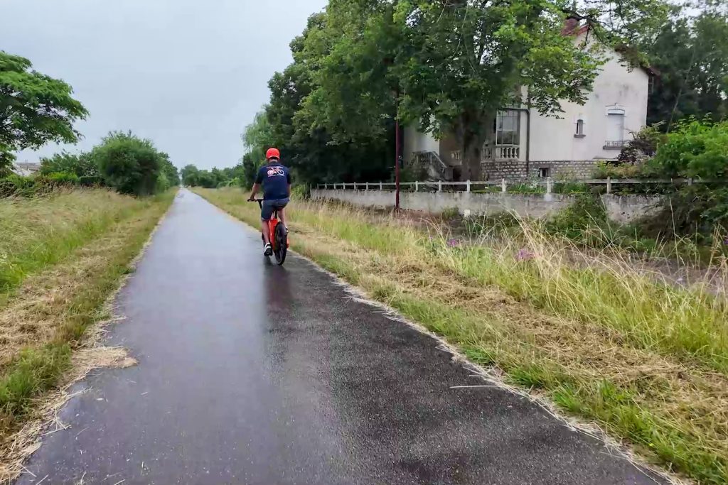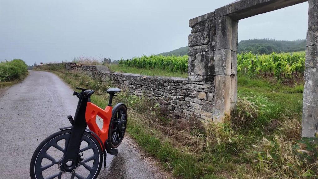 But it didn’t take long for the skies to turn grey. The drizzle set in, and suddenly our ride had a bit more of an adventurous vibe. We covered the 10 km to the South Côte Chalonnaise Tourist Office under a steady, fine rain. The bike? Unfazed. No rust, no squeaks, and still gripping the road like a champ – even when it’s slick. A solid reminder that this bike is built grease-free and weather-resistant.