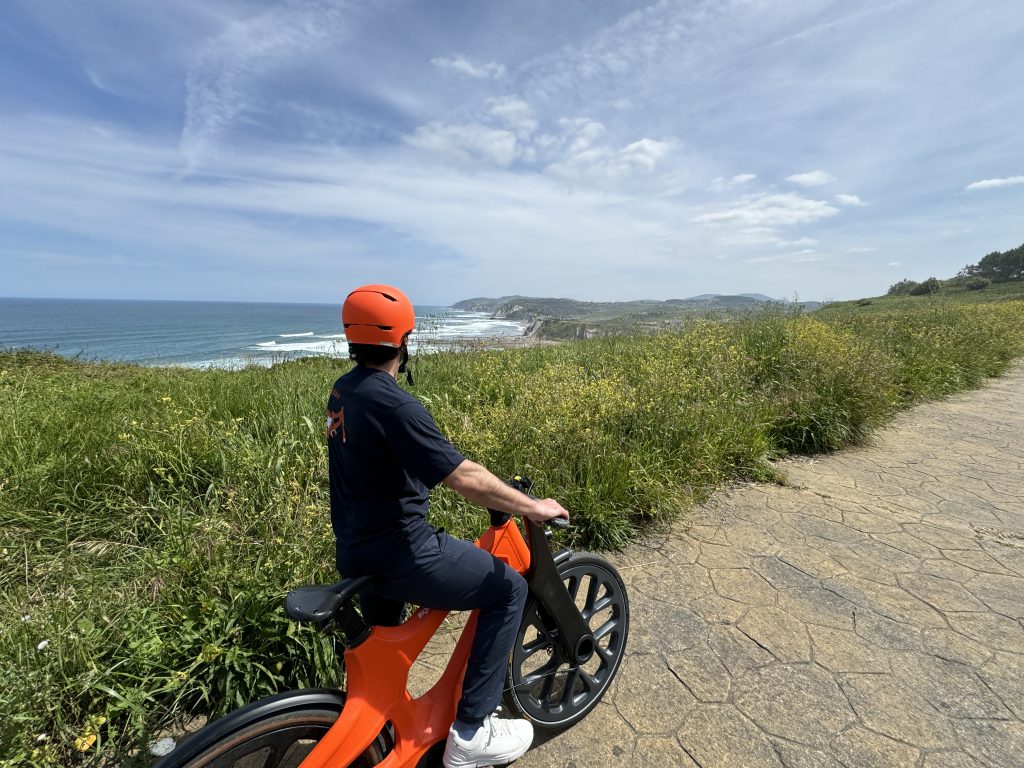 We continued our journey along the coastal trail, enjoying the amazing views until we reached Punta Galea. There, where we stopped to admire the impressive cliffs (don’t worry, there’s some land behind the fence, so our rider Jon was never in danger 😉).