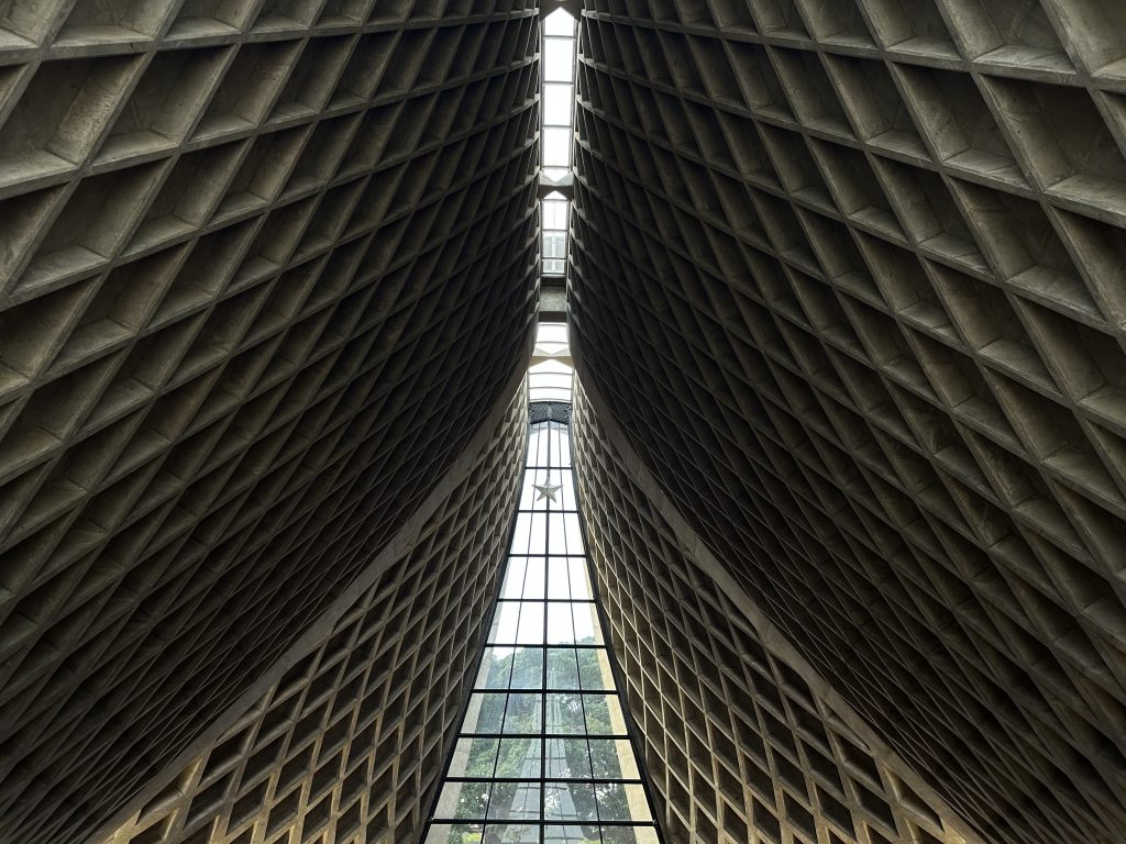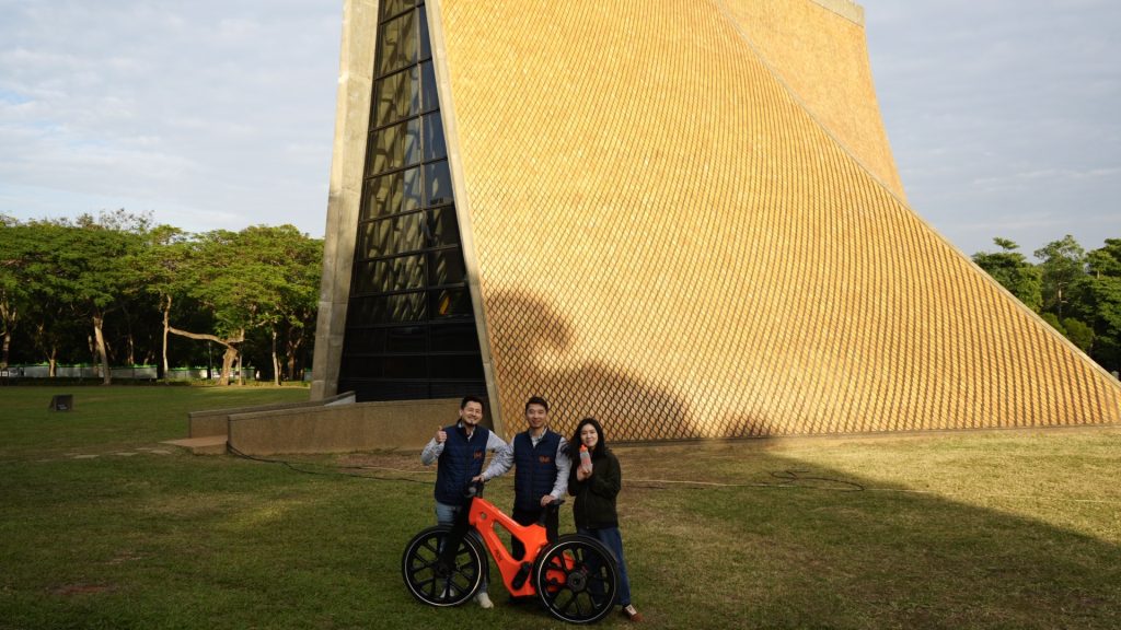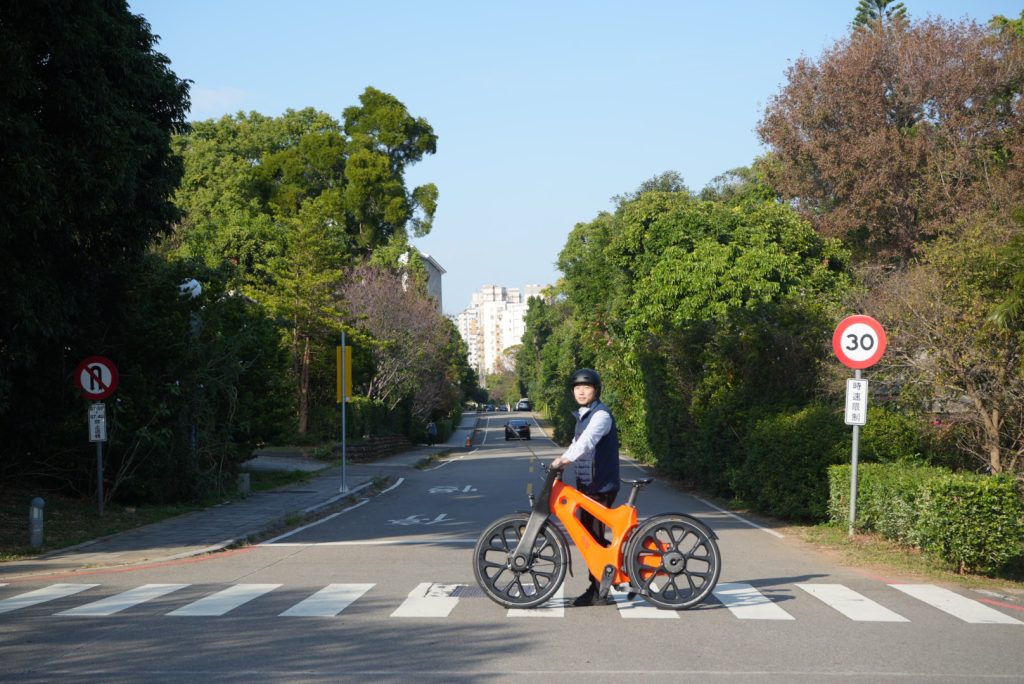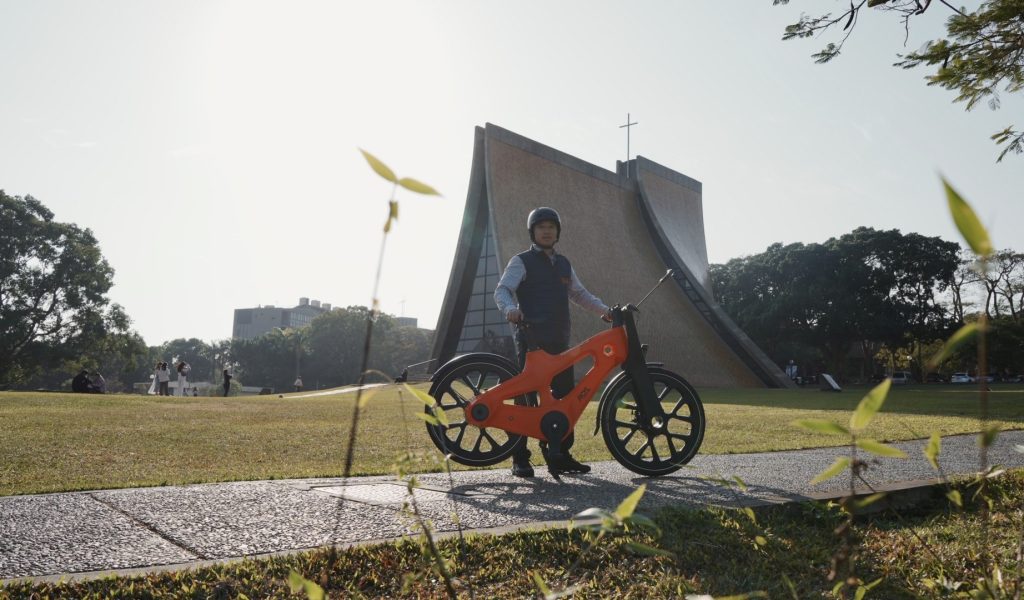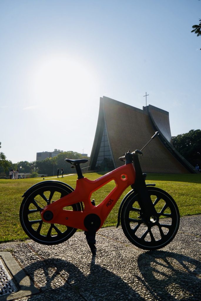 On a sunny day with a clear blue sky, riding through the beautiful campus was a refreshing experience. At one of the crossroads, the stunning view of the Taichung Luce Chapel caught our eye.