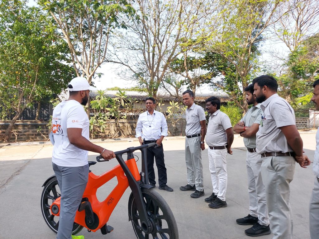 Today, our journey was kicked off by our rider Gopi. First, we went to Proteck Chennai where we met Daniel and the team. They were excited to see the bike and learn more about the initiative. Proteck has been integrating Igus drag chains, cables, connectors, and other solutions into their systems, ensuring durability and efficiency.