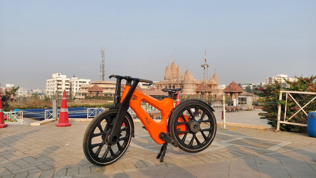 Next, we rode to two iconic landmarks of Pune: Swaminarayan Temple and Shaniwar Wada. The contrast was striking—our igus:bike standing proudly against the backdrop of centuries-old heritage sites. Curious onlookers gathered, who seemed to be pretty eager to learn more about the bike.