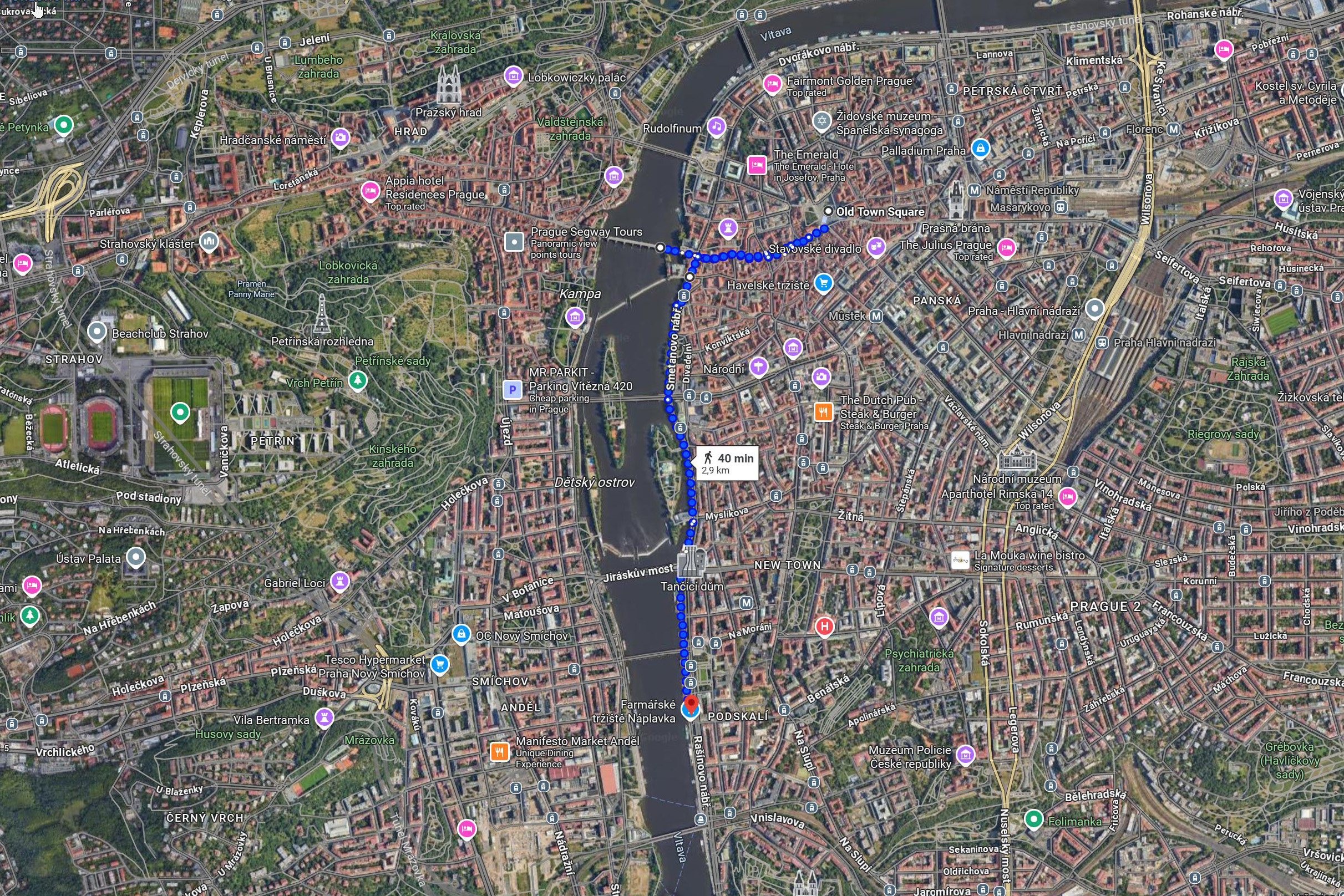 Starting at Náplavka by the Vltava River, she met colleague Tomáš Houdek and explored Prague by boat and bike. They passed landmarks like the Dancing House, National Theatre, and Charles Bridge, ending at the Astronomical Clock.