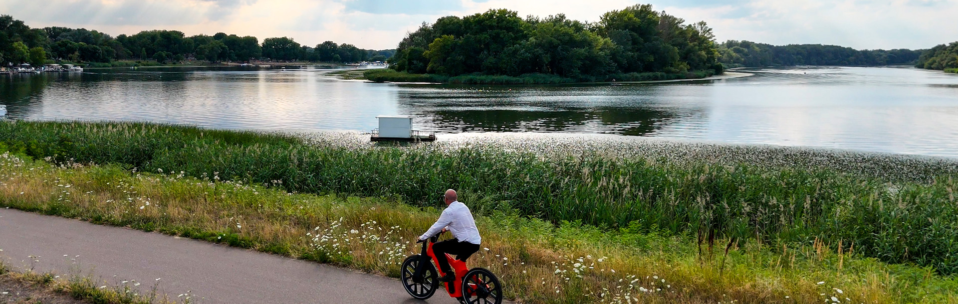 We welcome the igus:bike to Hungary! Right away we start with showing where the igus Hungary office will move in the coming months. After this we start the actual journey through the country from the eastern regions, namely the city of Debrecen. Starting with a litthe visit of the town and a customer our journey takes us westward to see the great Hungarian plain, Alföld and one of its iconic landmarks the Nine-Hole Bridge. Crossing the bridge we continue west and reach the second biggest river of Hungary, the river Tisza, and one of its artifical lake the Tisza-Lake. On its shore we visit the Tisza-Lake Cycling Center where we can ride our bikes tot he top of the building for a nive view over the lake.