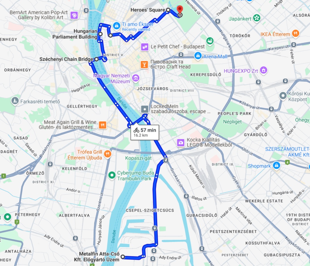 Our second rider’s first stop is at the famous Parliament building ont he shore of the Danube. We turn to North-East and ride along the Andrássy avenue tot he nice and spacious Hero square, and finally we ride into the shades of the trees of the City-Park and check out the building of the Hungarian House of Music.