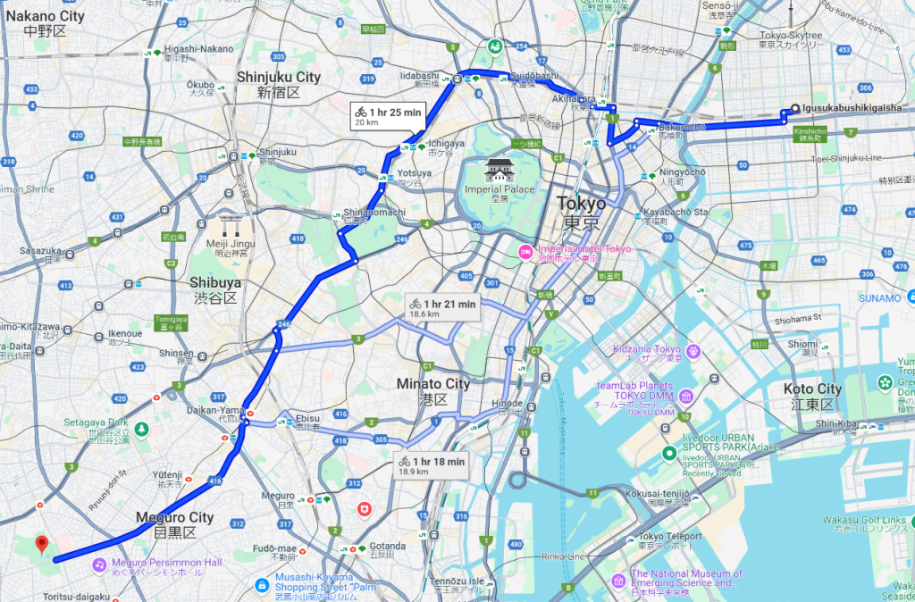 In Stage 8, we’re heading to west Tokyo. The igus: bike passed through Akihabara, an area full of otaku culture, to a luxury hotel the same age as igus. We then stopped at the Shibuya Crossing, the busiest intersection in the world. The day’s journey then finished at Komazawa park, which was the venue for the 1964 Tokyo Olympics.