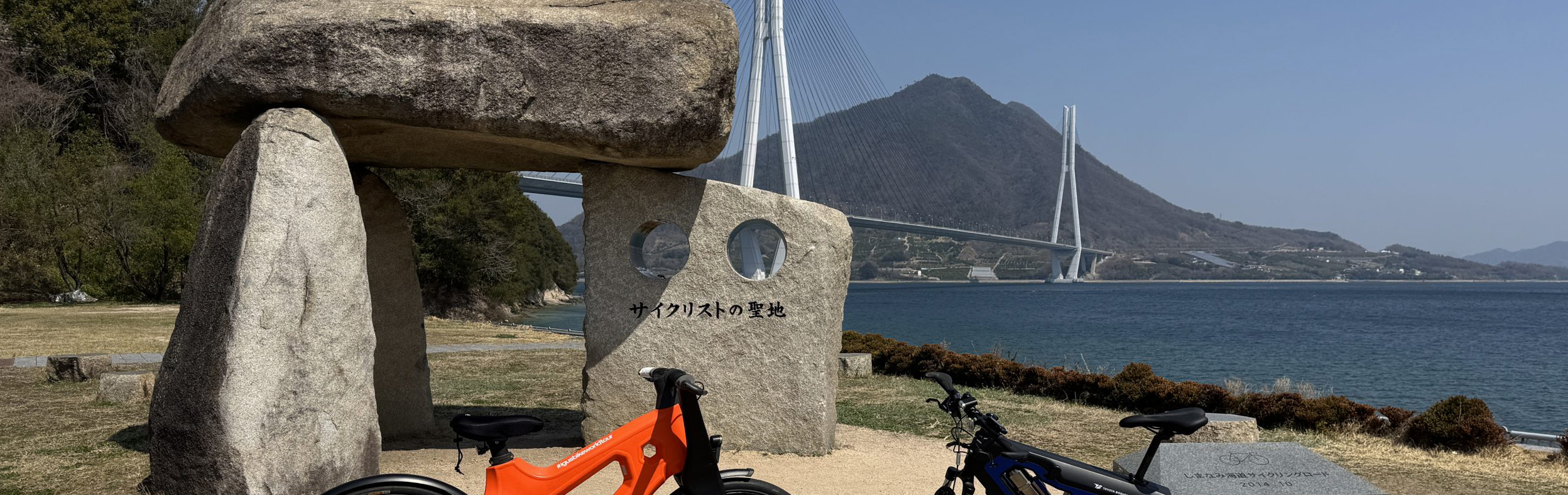 The Shimanami Kaido cycling route is a spectacular over sea route known as one of the best cycling roads in Japan. Connecting Imabari in Ehime to Hiroshima, the bike path links islands in the Seto Inland Sea via bridges. We did a special ride with Toyota Boshoku’s hydrogen bicycle with stunning views and the idyllic scenery.