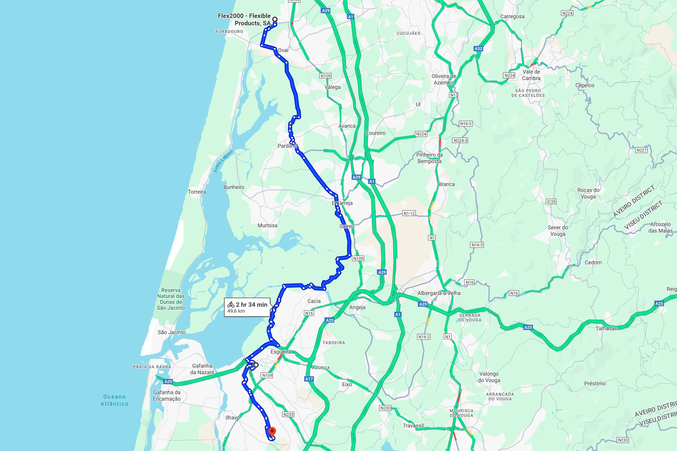 Our Igus Bike Tour Portugal continued south to the magical Ria de Aveiro, a 45 km lagoon on Portugal’s western coast. Starting in Ovar, we visited Flex2000, an igus partner specializing in advanced industrial solutions, where we saw igus e-chains® for long travels under real conditions.