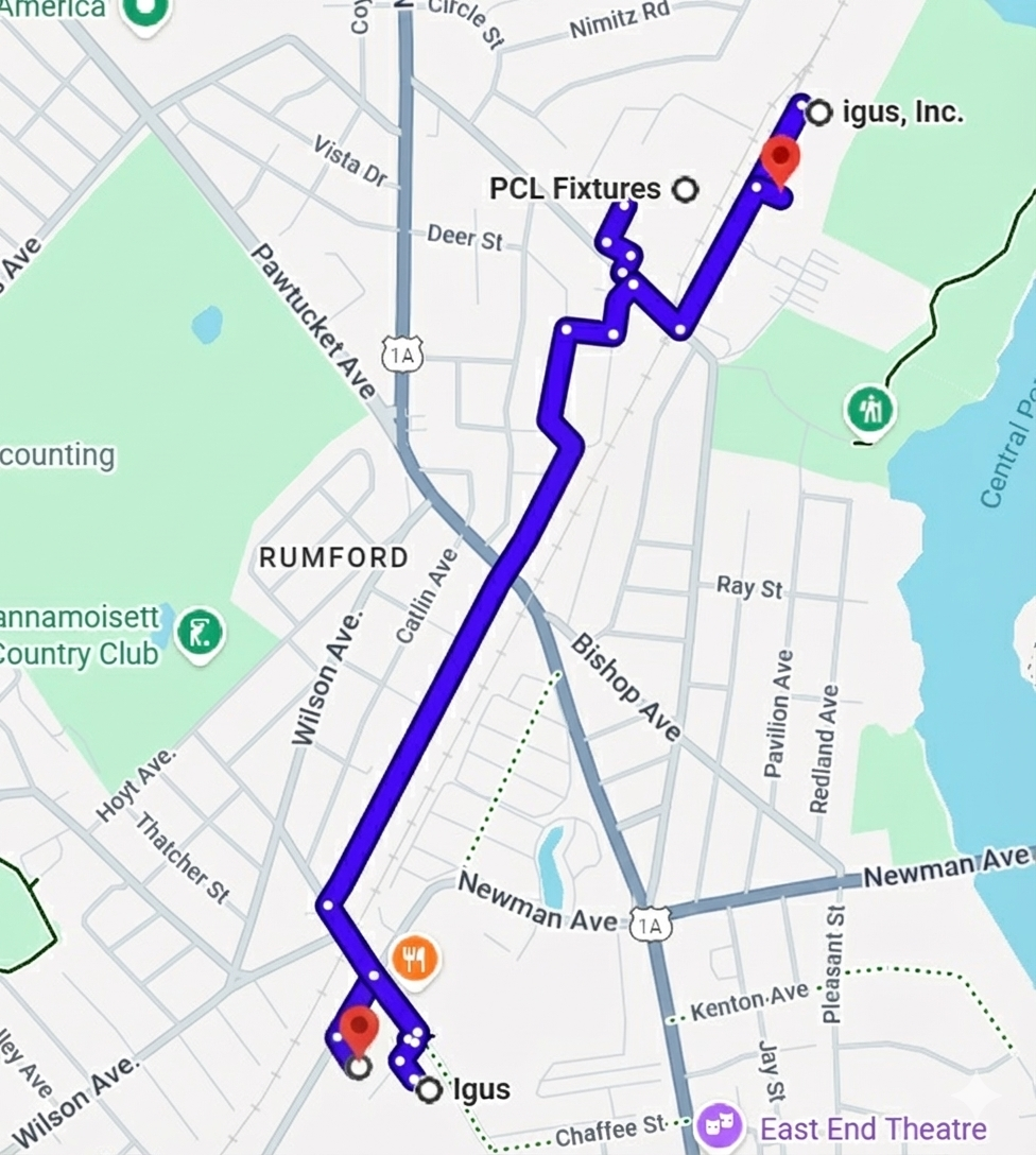 Starting Point: 257 Ferris Ave, Rumford, RI