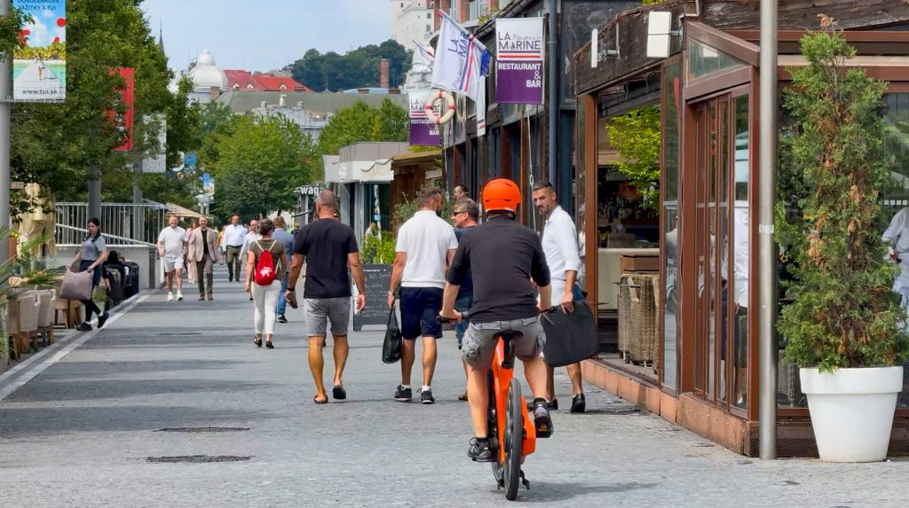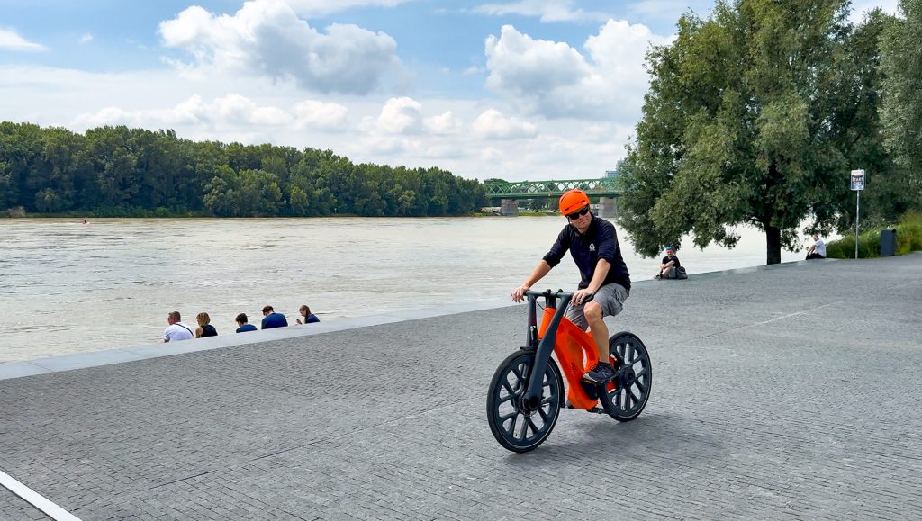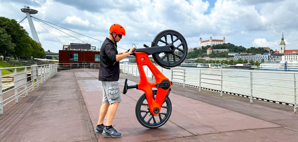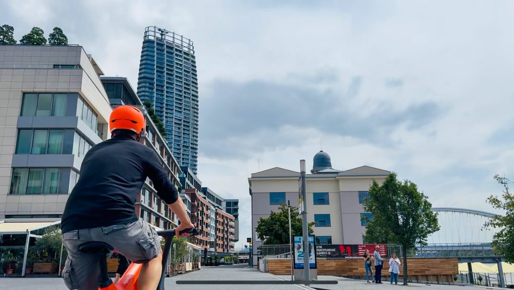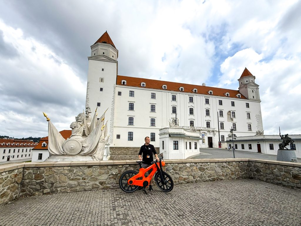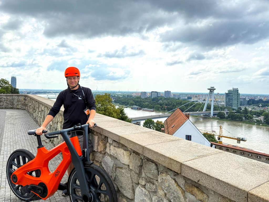 We conclude this part of our ride at Tyršovo nábrežie – a peaceful spot on the right bank of the river that offers one of the most beautiful panoramic views of Bratislava.