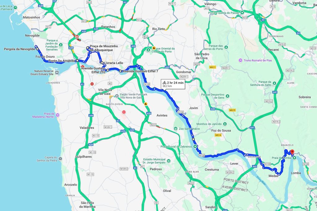 From Foz do Douro, we followed the coastline until the point where the Douro River begins its journey inland. Along the way, the fog slowly lifted, revealing the beauty of Porto’s waterfront and its stunning bridges. The first one we saw was the Arrábida Bridge, with its monumental concrete arch, an engineering marvel that still impresses decades after its construction.