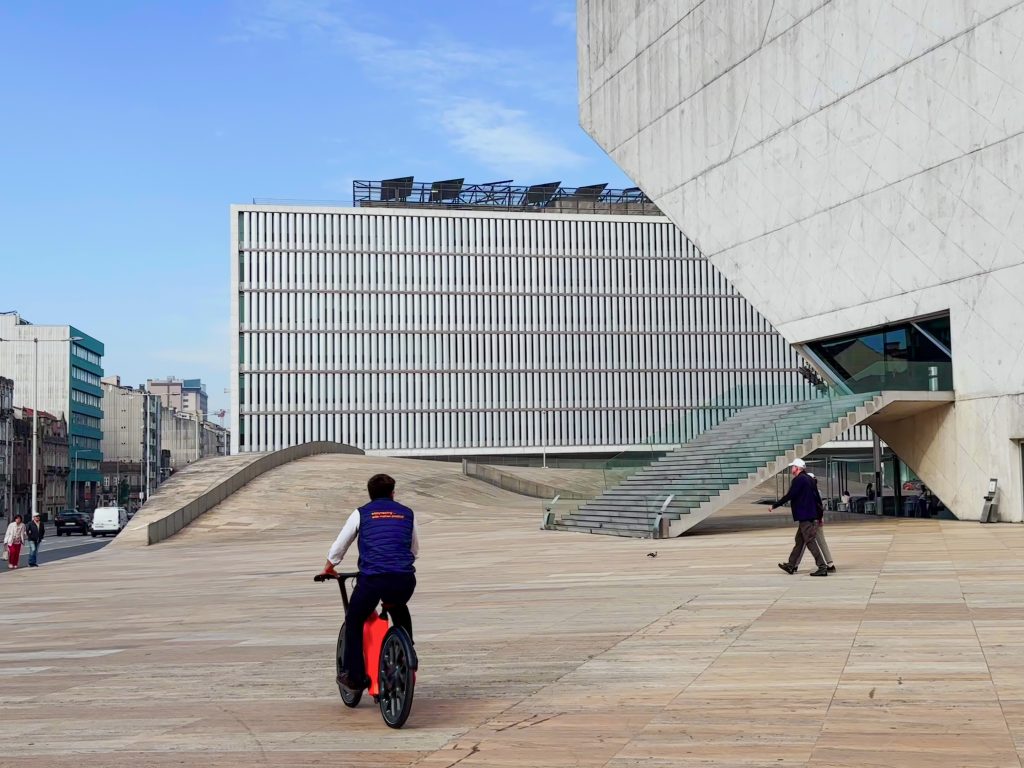 From there, the road started to climb, leading us up toward one of the city’s most iconic modern landmarks, the Casa da Música. Its bold, futuristic design stood in striking contrast to the city’s misty morning mood, a perfect symbol of Porto’s blend of tradition and innovation.