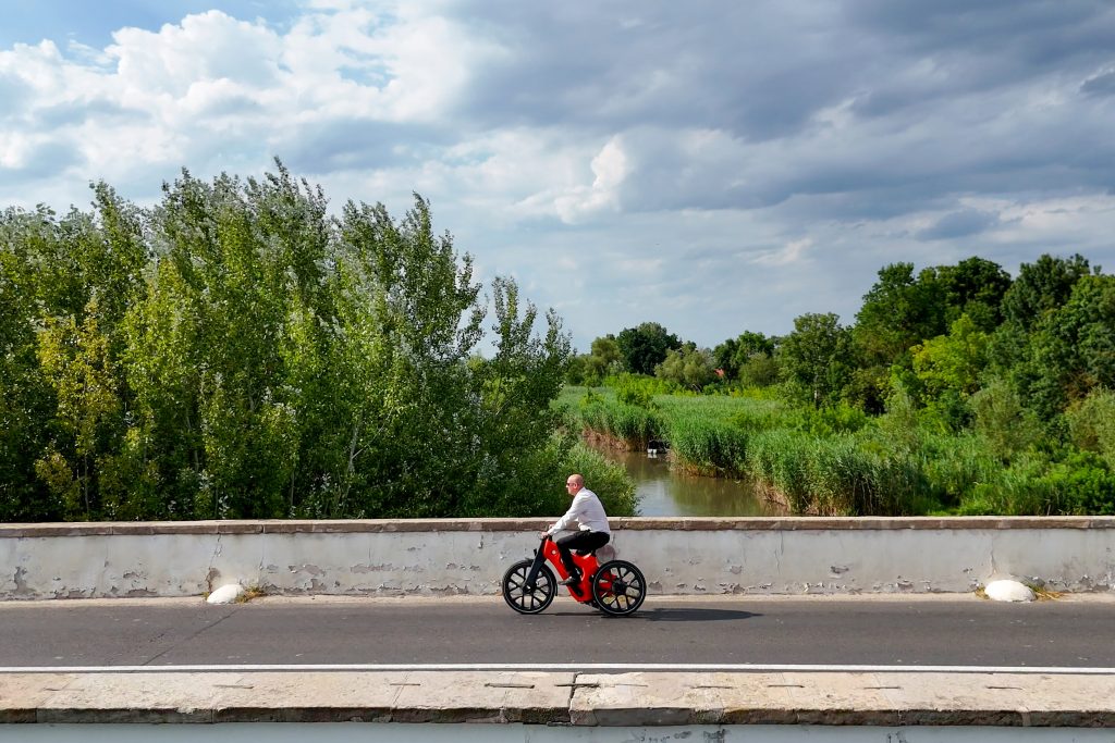 Leaving Debrecen behind, we made our way to Hortobágy National Park, one of Hungary’s most iconic natural and cultural landscapes. Known for its vast plains and pastoral traditions, the park is home to the famous Nine-Hole Bridge (Kilenclyukú híd). This 19th-century stone bridge stretches elegantly across the steppe and remains a beloved symbol of the Hungarian countryside. Naturally, we couldn’t resist cycling across it — and capturing a few scenic shots along the way.