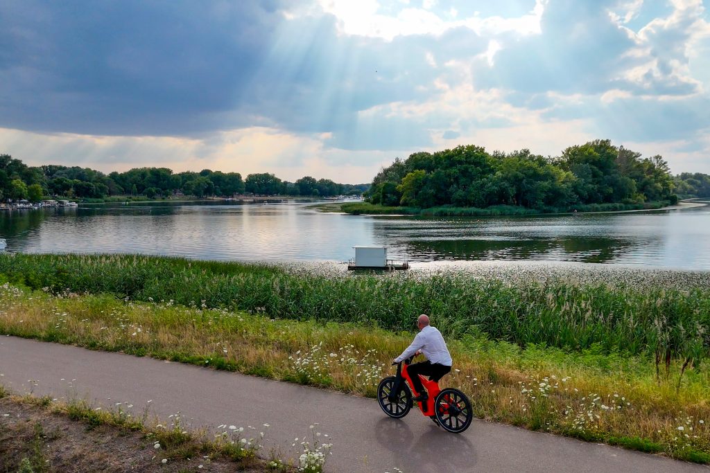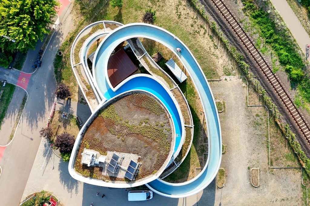 To end the day, we arrived at Lake Tisza, a unique artificial lake that’s become a haven for nature lovers and cyclists alike. We stopped at the Tisza-tó Cycling Center, an innovative facility that includes aerial cycling paths leading all the way up to the rooftop. Of course, we made the climb — and were rewarded with sweeping views of the water and wetlands.