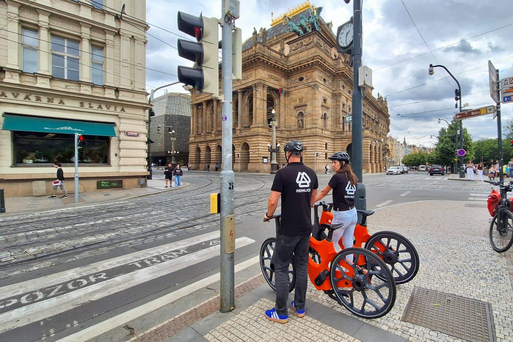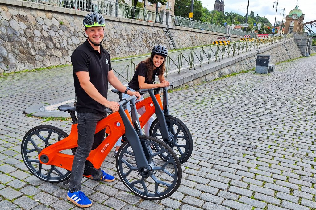 Back on the bike, Kamila and Tomáš continued through the city, passing architectural icons like the Dancing House and the National Theatre — powerful contrasts of modernity and tradition, just like the igus:bike itself.