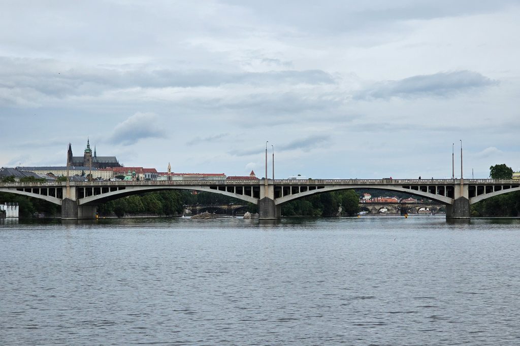 Together, they left the bike momentarily behind and boarded a boat to enjoy a different perspective of the city — from the water. As the boat glided along the Vltava, they admired the impressive silhouette of Prague Castle, watching history roll by under the summer sky.