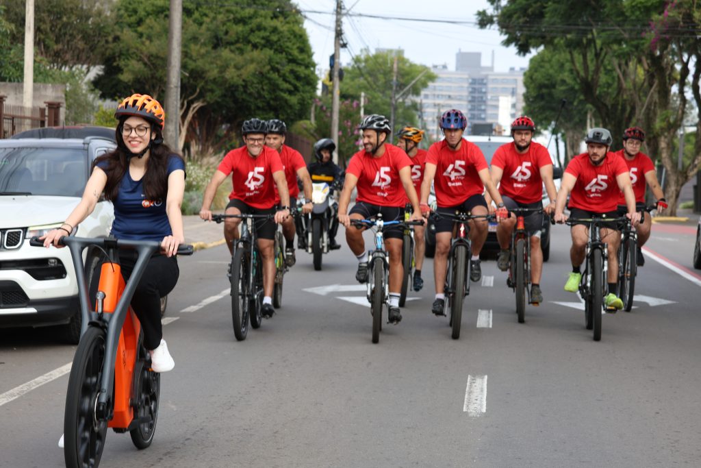 With the support of the municipal traffic guard (GCM), the group set off, forming a small, moving connection between companies, people and the streets of Bento Gonçalves.