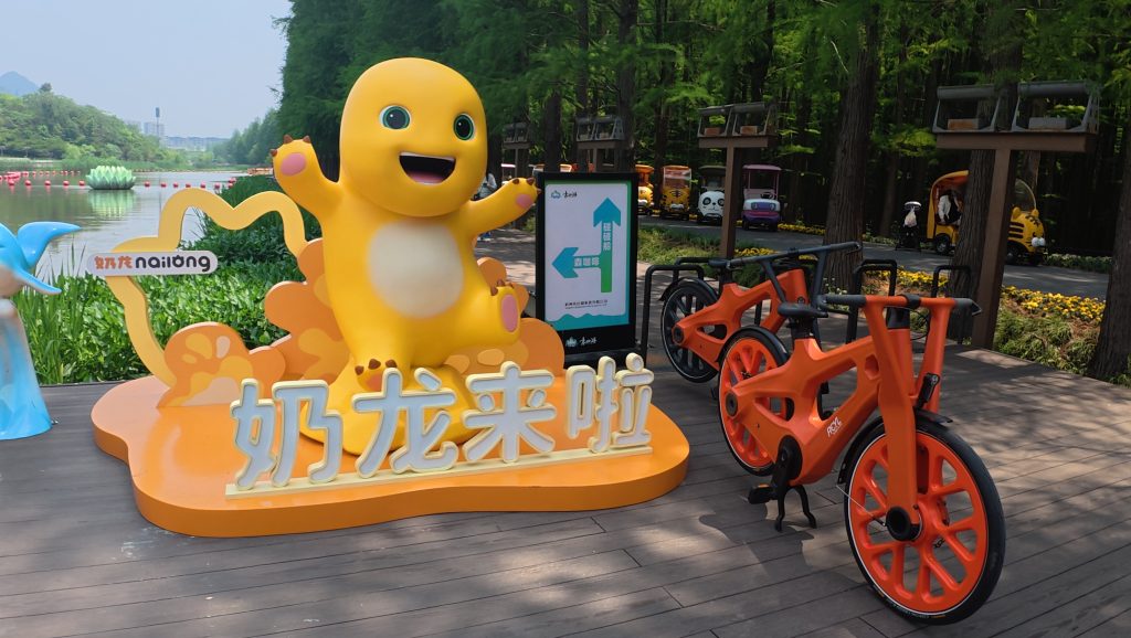 Hi, I’m Evan. I’m delighted that igus’ eco-friendly plastic recycling concept has been recognized by tourists and customers. Today’s bike tour ended perfectly with a photo on the igus:bike alongside the popular Nailoong mascot in the scenic area.
