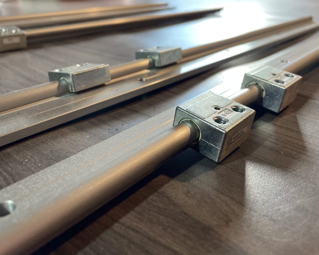 Self-lubricating linear guides → smooth operation even under heat, grease, and residue