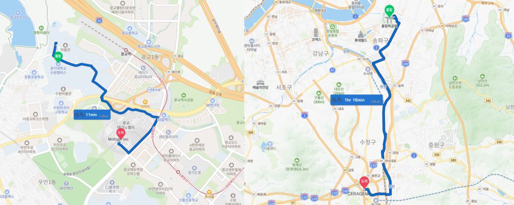 The journey began at Kyonggi University in Suwon, with the first stop at Mobinn. Located 2.8 kilometers away, the ride took a brief 11 minutes—a perfect warm-up for the longer cycling routes ahead. Mobinn is specializing in advanced mobility solutions and innovative engineering technologies. With a strong focus on automation, robotics, and smart transportation, Mobinn is committed to developing cutting-edge products that enhance efficiency and convenience in various industries.