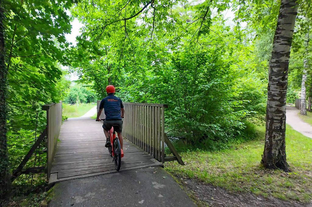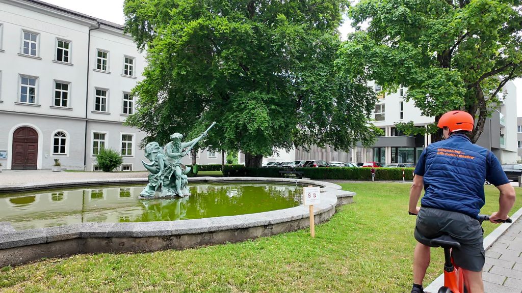 We begin our ride in the Stadtpark Ried, a tranquil green space at the edge of the town center. The park features sculptures, old trees, and carefully maintained walking paths — ideal for a moment of calm before the tour begins. Originally designed for public recreation, today the park is also home to small cultural events and offers scenic views of the town’s skyline.