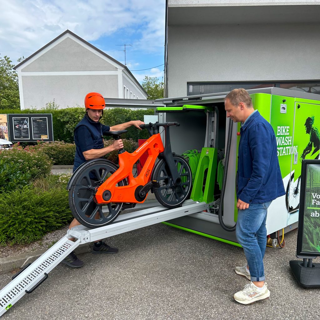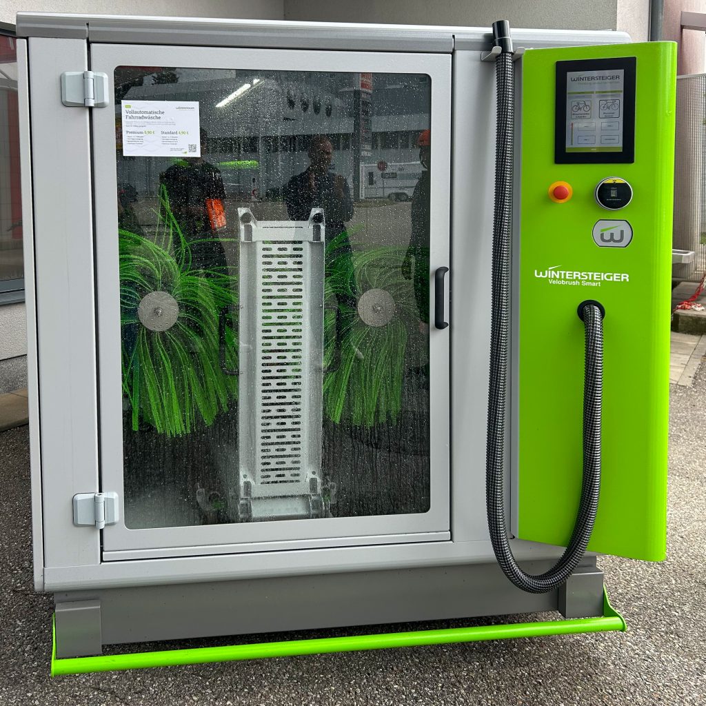 Our stage ends at Wintersteiger AG, a global innovator in precision machinery. Originally known for ski service equipment, the company now produces advanced systems for agriculture, woodworking, and bike services. We’re here for a live demo of their automated Bike Wash station — a touchless, water-saving, and efficient solution that brings a new standard of cleanliness to urban and rental fleets.