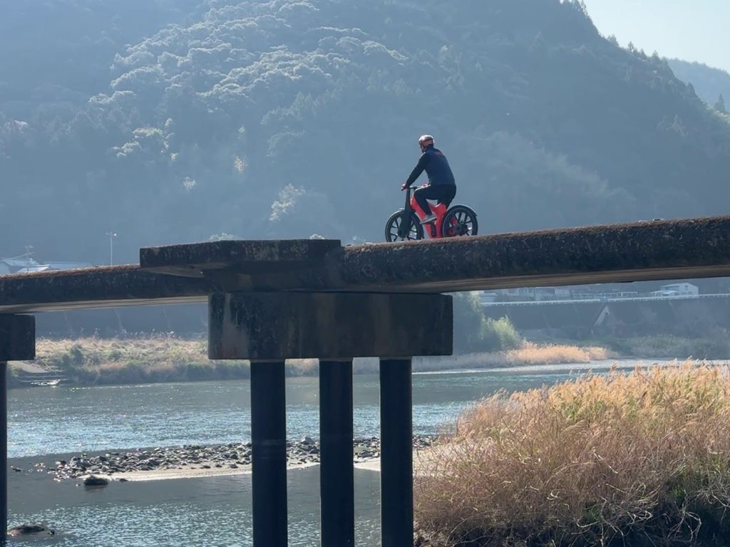 The igus:bike headed towards central Kochi along the Niyodo River, known for its clean water, before descending the mountain and arriving at GIKEN LTD., located in an industrial area by the sea.