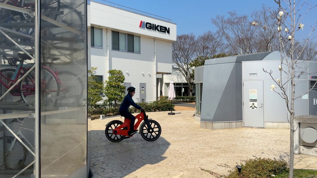 It can be set up like a tent at an event site and can hold 58 bicycles on a 46㎡ area. igus’ Energy chain is instrumental in this fast operation. We also witnessed the technological prowess of GIKEN, including the Eco Park, a parking lot, and the EV Eco Park, which houses an EV that can seat two people.