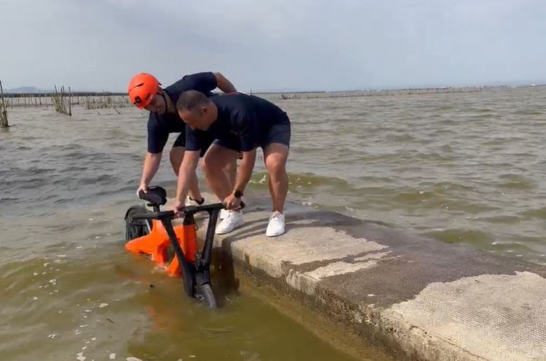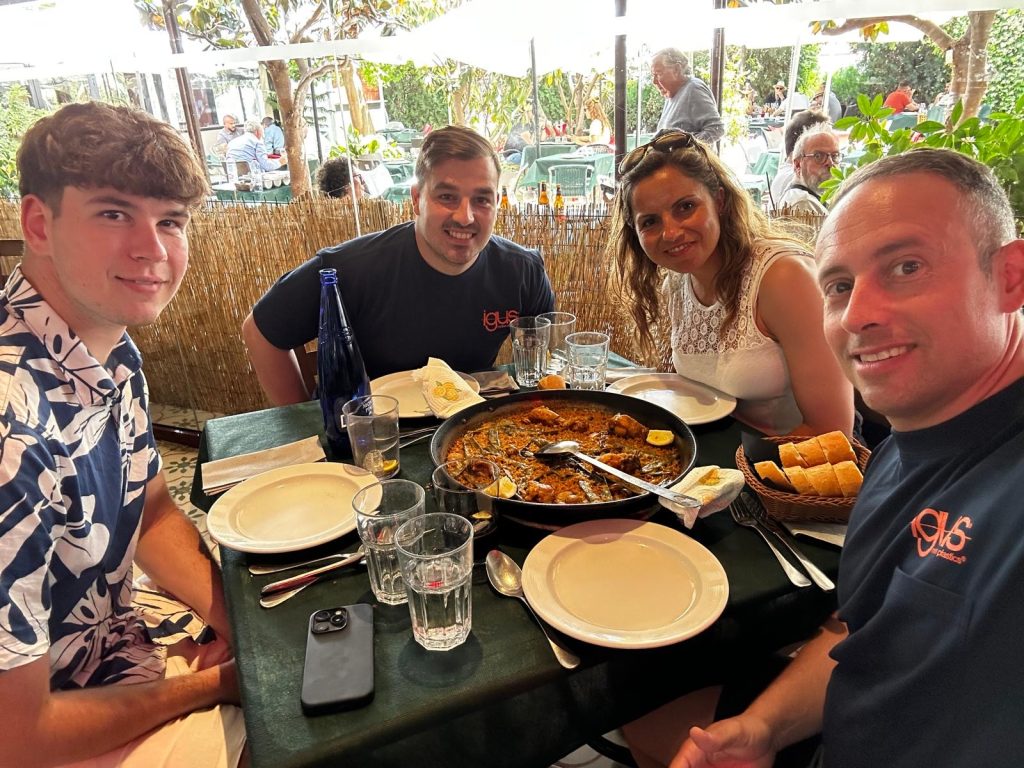 Once our inspiring visit came to an end, we headed to the best place in the world to eat Paella: Albufera. When we got there, we realized the bike was covered in dust and our riders didn’t think twice: time for a quick dip! 🛀
