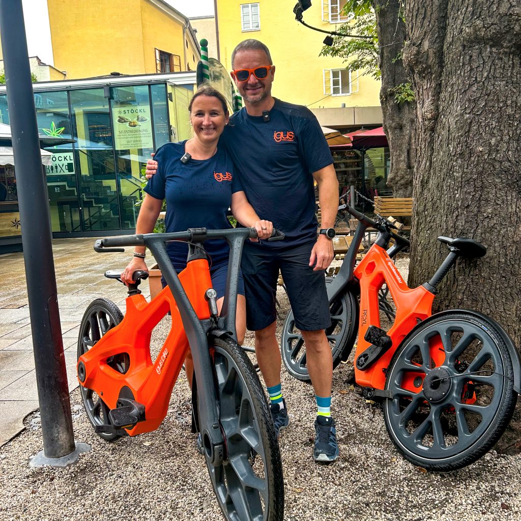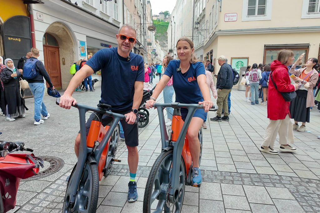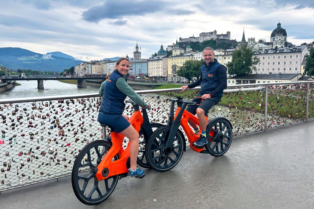 On the bike today: Marco Ohler, Product Manager for iglidur® bearings and Bar stock, and Carola Huber, Assistant to the Management. Both set off ready to explore what makes Salzburg so unforgettable.