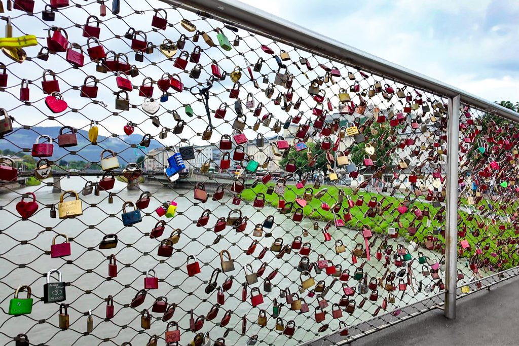 Along the ride, Marco and Carola pass the Markatsteg, Salzburg’s famous “Lover’s Bridge” covered in colorful padlocks. Each lock represents a promise, a memory, or a story — adding a personal, romantic touch to the city’s scenic riverside. It’s a charming symbol of connection in a city full of meaningful moments.
