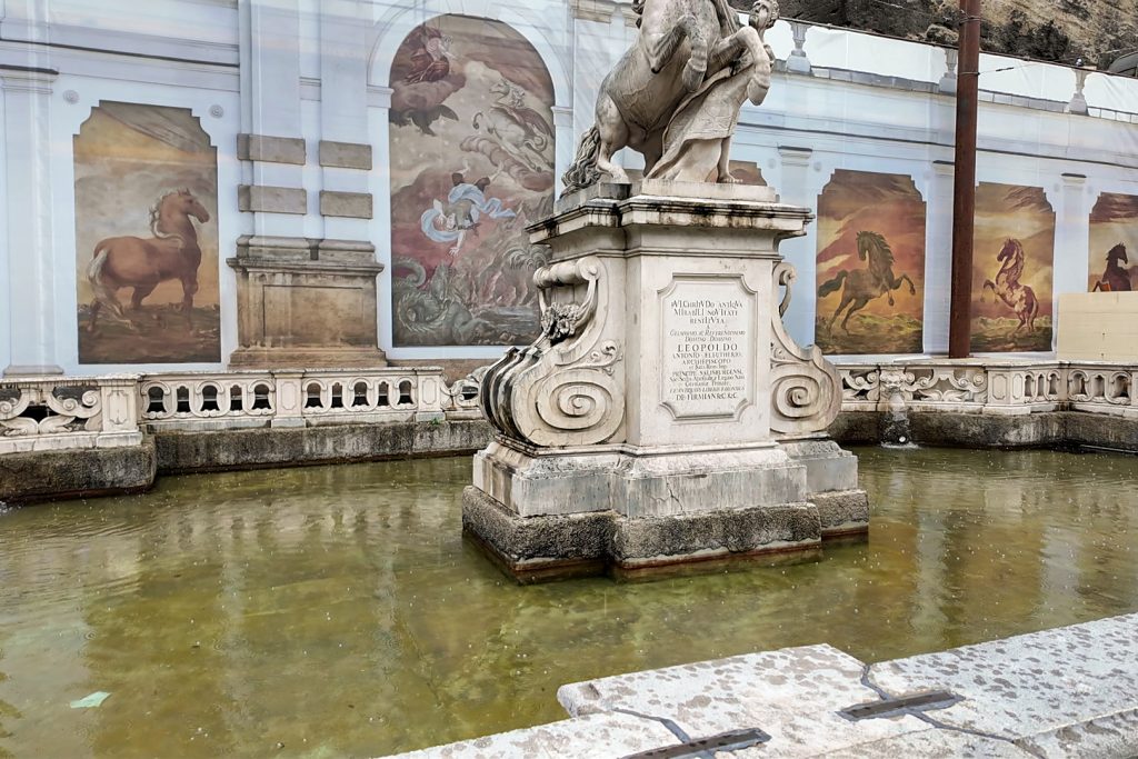 As we pass below the cliffs of the Mönchsberg, we arrive at the Pferdeschwemme. This 17th-century fountain once washed noble steeds; now it captures baroque Salzburg in stone and water. With mythological sculptures and rich detail, it’s both monument and memory.