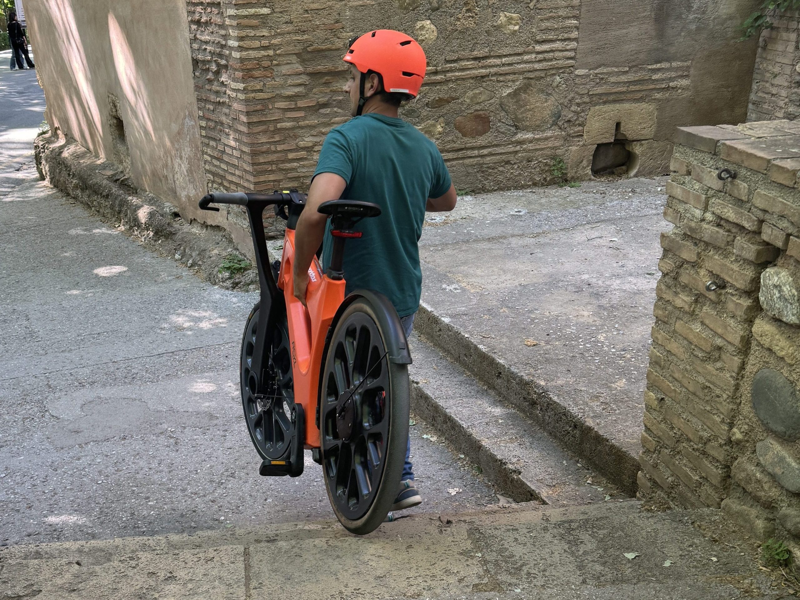 We started the day exploring the peaceful outskirts of the Alhambra — a quiet area filled with gardens, perfect for a walk or a bike ride. Although our igus:bike has proven it can handle any kind of obstacles, when it comes to stairs, we prefer to carry it — not because we doubt its durability, but because rider safety always comes first! 🙏🏻