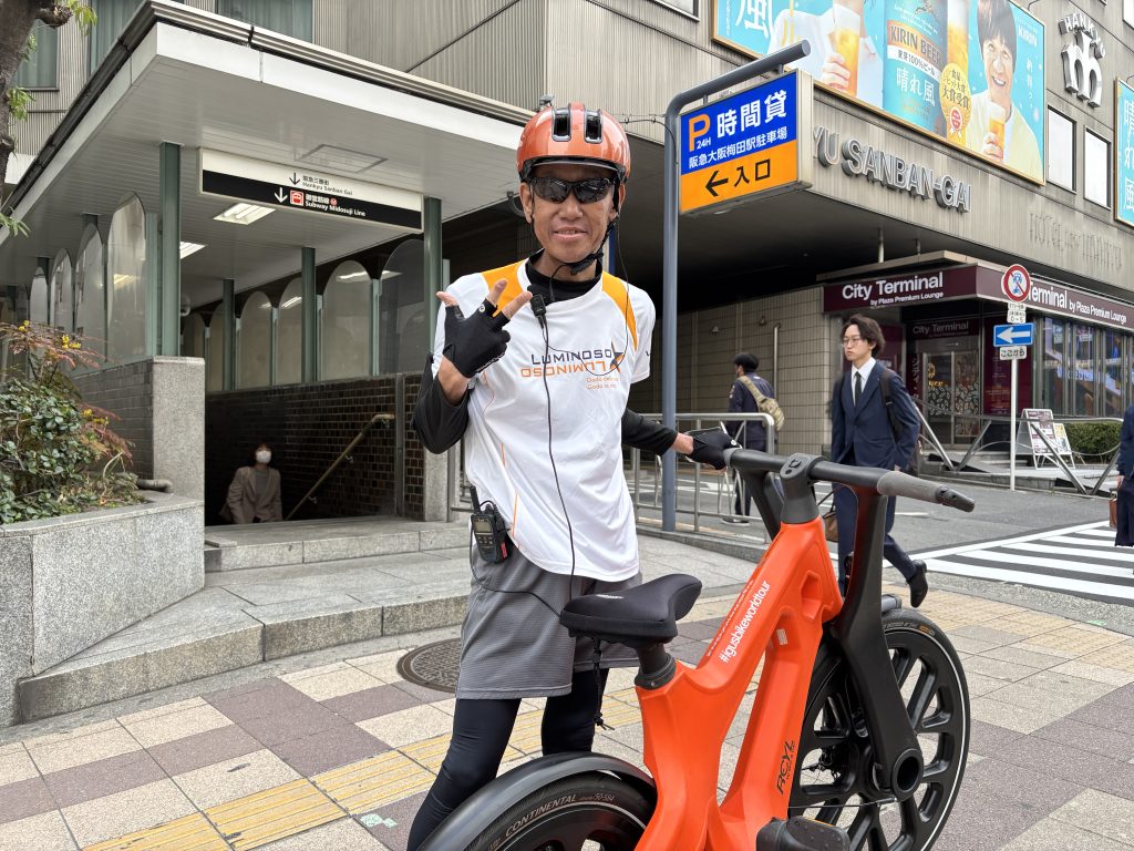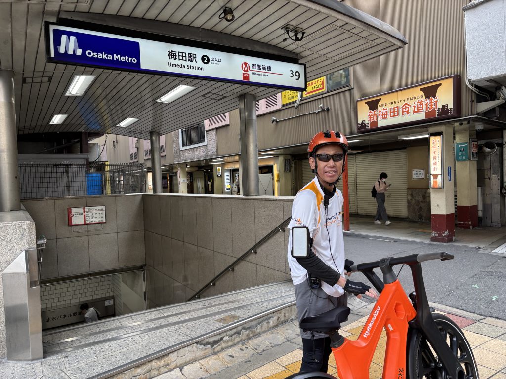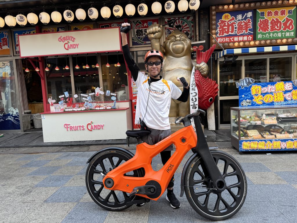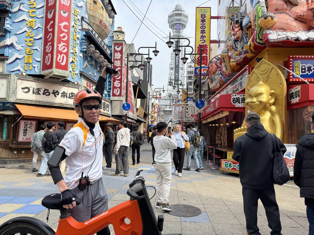 Next, the bike visited Tsutenkaku Tower. This symbol of Osaka is located 2km from Ebisu Bridge and has a history of more than 100 years, creating a unique atmosphere with a fusion of old and new.