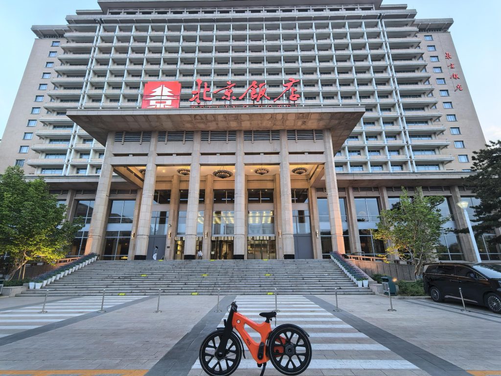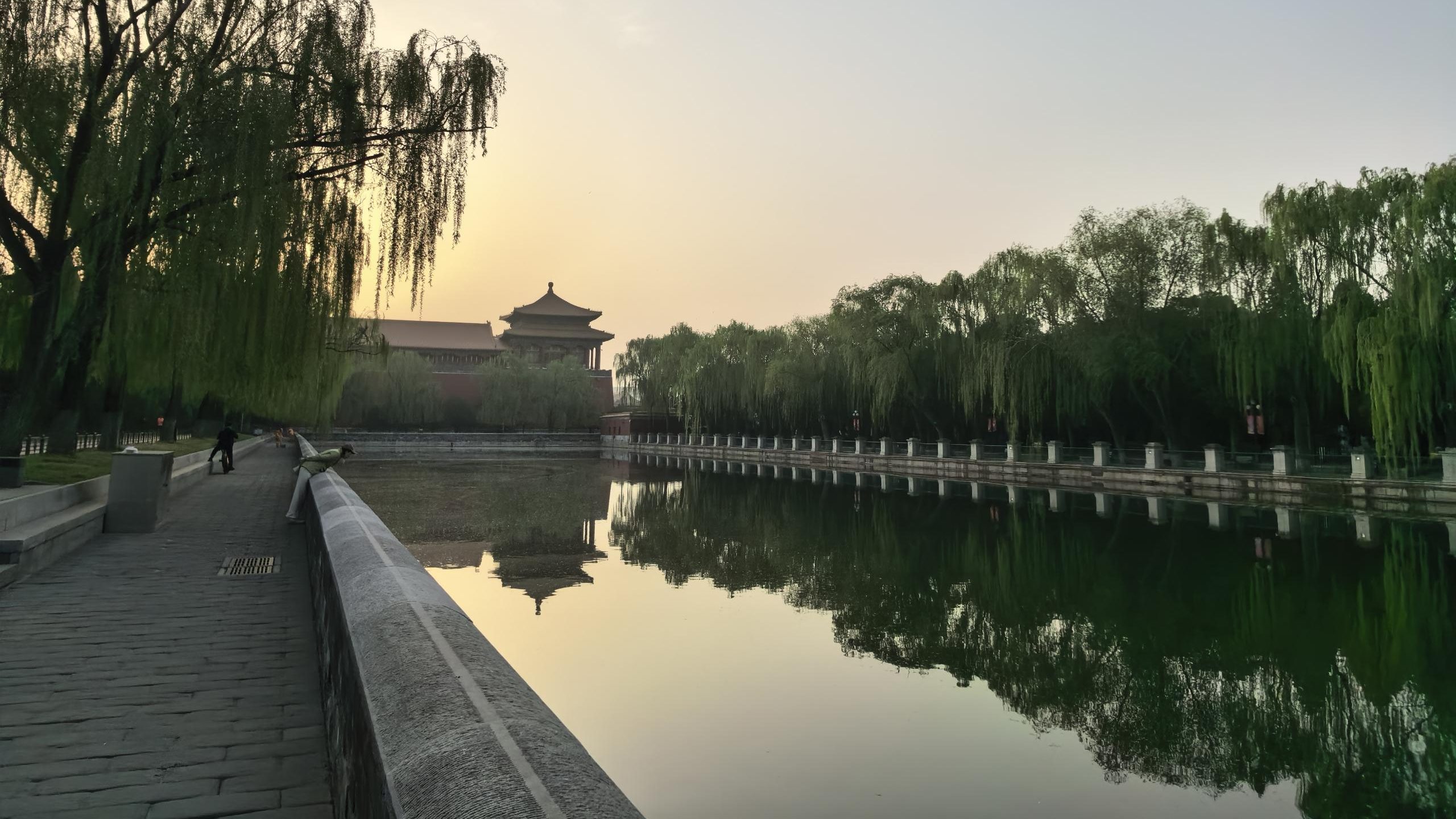 Starting from Xiannong Altar, passing by the Temple of Heaven, we have arrived at the Beijing Hotel. In the early morning, the moat is especially serene. Willows sway gently on both sides, and a soft breeze ripples the surface of the water, making it glisten in the sunlight.