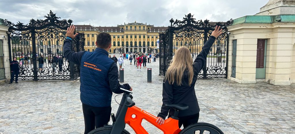 As the igus:bike Tour Austria nears its end, Stage 9 begins under grey skies, with a light drizzle falling over the iconic grounds of Schönbrunn Palace. But neither rain nor history can slow this ride. Liman Muslii, Technical Sales Representative for bearings and linear technology, and Annalena Böckl, Digital Marketing Manager for igus Austria, set off together — tracing a path from Austria’s imperial heritage to the forward-thinking logistics of MOTIC.