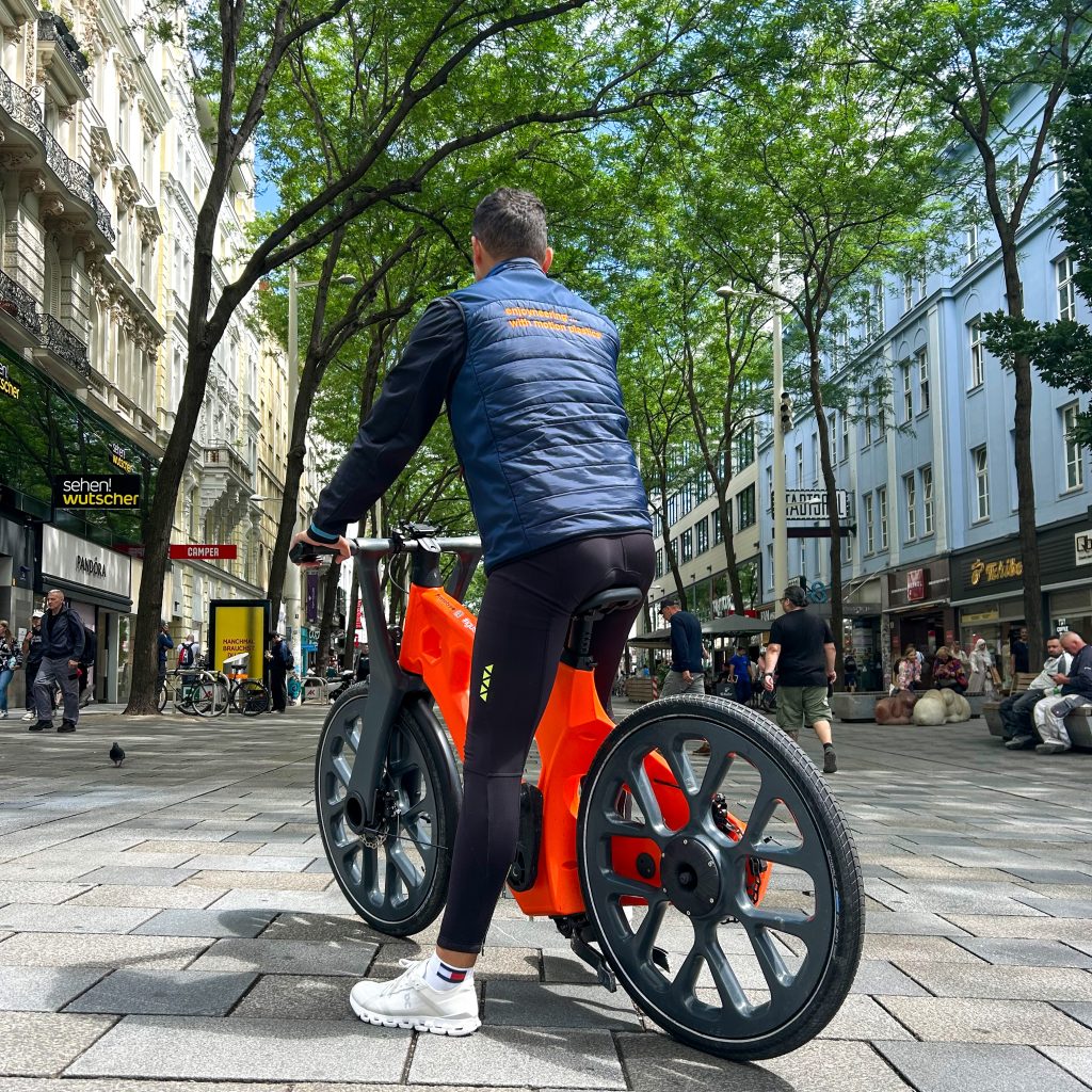 Leaving the royal grounds, the route dives into Vienna’s urban energy along Mariahilfer Straße. One of the city’s liveliest shopping streets, it’s a real-world mobility test — busy, unpredictable, and full of motion. Yet the igus:bike handles it all with poise, navigating crowds and curbs in silence, a clean and composed companion to the city’s constant rhythm.