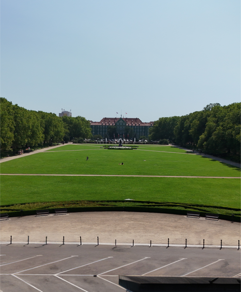 In the city center, we visited the Szczecin City Hall – a building that serves as the administrative center and the place where decisions shaping the development of the regional capital are made. Right next to the office is one of Szczecin’s most beautiful recreational spaces – the John Paul II Jasne Błonia Square. This expansive green space features a wide avenue lined with plane trees, a statue of the Pope, and a fountain. It’s a place for walks, outdoor events, and city celebrations.