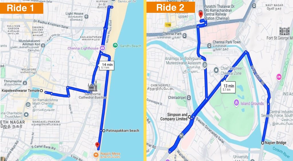 Our rider, Jai, began with an early morning ride at 6 am to Kapaleeshwarar Temple, one of the most iconic temples in Chennai. The temple is dedicated to Lord Shiva. Its Dravidian-style intricate architecture and towering gopuram symbolise the deep-rooted cultural heritage of Chennai.