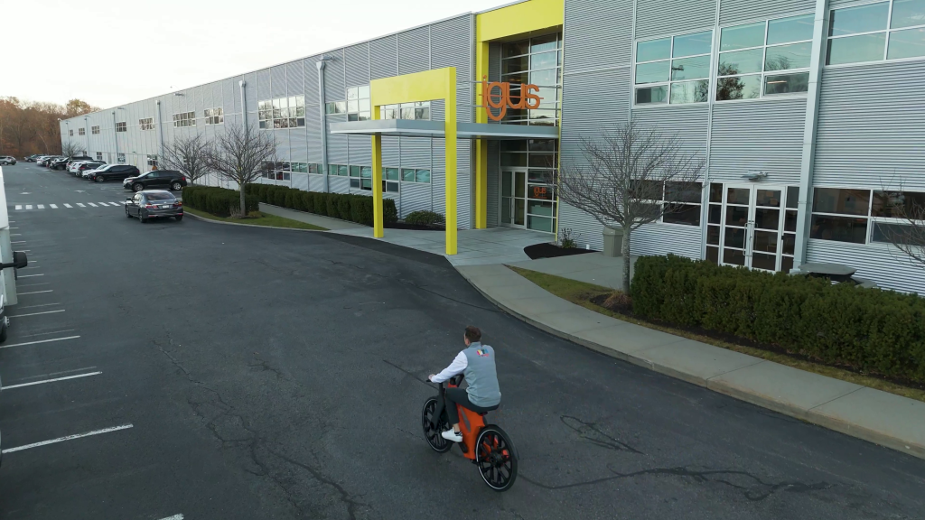 The final stage of the U.S. leg of the igus:bike tour brought the bike back to where the heart of the operation beats: our igus, Inc. headquarters in Rhode Island! This was such a momentous occasion that we decided to switch things up. Instead of just one or two riders, we had four different team members lead the bike through a victory lap across our massive U.S. campus.