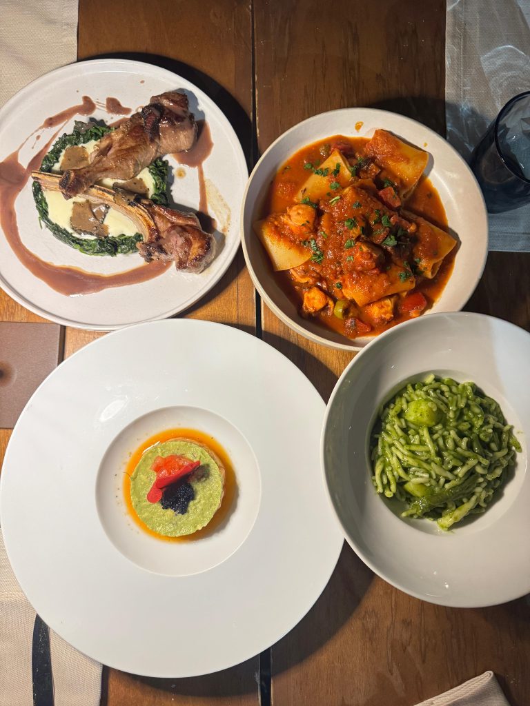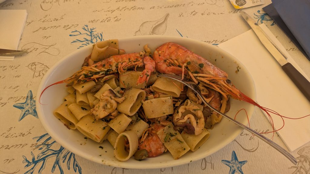 Hunger hits us along the way and as everyone knows, you eat really well in Liguria. We find a small seaside restaurant that immediately attracts us. It’s the perfect spot to sit down and enjoy a Calamarata: a true local seafood specialty.